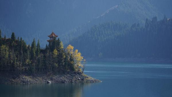 鑲嵌在博格達峰腰的新疆天池,東距烏魯木齊110公里,1980米的海拔讓這片高山湖泊自帶清靈氣韻。秋日里,湖水如凝脂般澄澈透亮,倒映著漫山鎏金與黛色山影,這顆 “天山明珠” 在秋日天光下更顯溫潤璀璨。