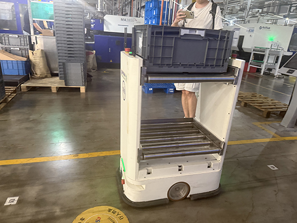 走進利弗德科技的生產車間,第一感覺就是:“靜”且“忙”!少了傳統工廠人聲鼎沸、叉車轟鳴的喧囂,取而代之的是一支由119臺AGV小車組成的“鋼鐵運輸隊”。它們在明亮整潔的車間地面上,沿著由二維碼和傳感器編織成的“智慧軌道”,靈活穿梭,精準配送。從原材料庫、生產線到半成品庫、成品庫,全程無縫銜接——“人力搬運工”在這里徹底不見了!